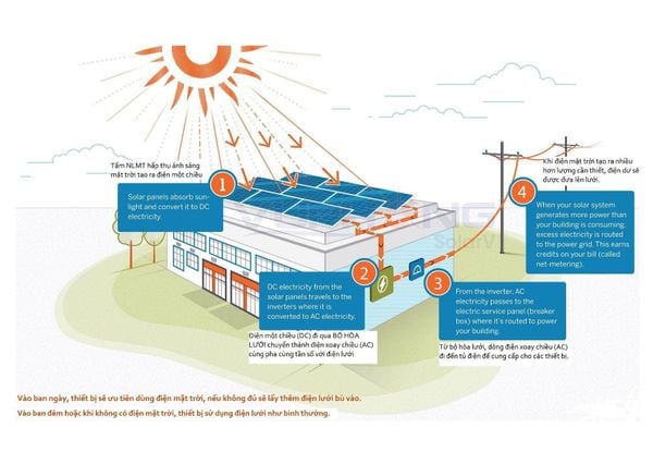 Dòng điện được tạo ra từ pin mặt trời là dòng điện một chiều (ký hiệu là DC). Muốn sử dụng các thiết bị bình thường, bạn phải chuyển điện từ DC thành điện xoay chiều (ký hiệu là AC). Lúc này, chúng ta cần đến inverter.